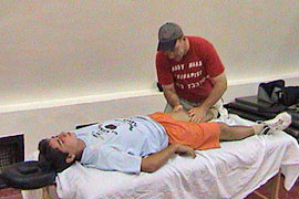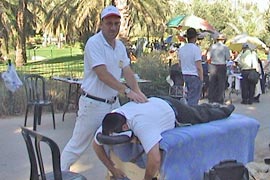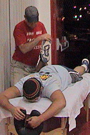 Playoffs: Andy doing sports massage to the athletes on both teams.